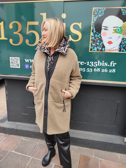 Manteau polaire, accessoire col léopard non compris
