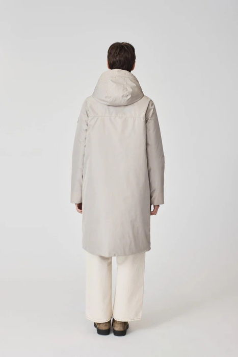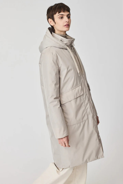 fermetures éclair étanche à double curseur sur le devant, des poches plaquées à rabat, une version contemporaine et polyvalente de la parka classique.