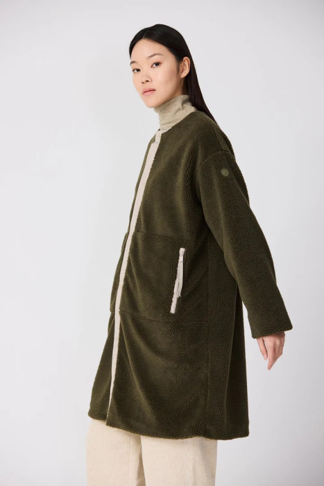 Chaud et confortable, le long manteau en sherpa est votre vêtement d’extérieur de choix pour la saison hivernale. Il présente une silhouette ample arrivant au genou avec un col ras de cou et une patte de boutonnage frontale en tissu 100% nylon. Le manteau lui-même est entièrement doublé en 100% nylon pour une finition lisse. Des poches pratiques à fermeture éclair complètent la pièce, offrant à la fois style et fonctionnalité.