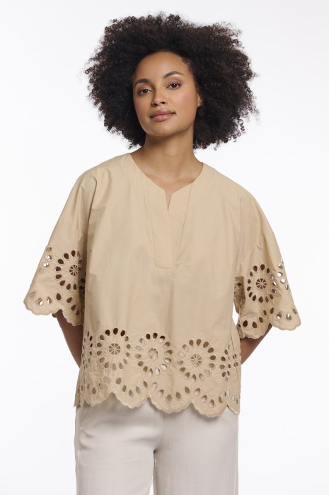 > Chemisier camel broderies