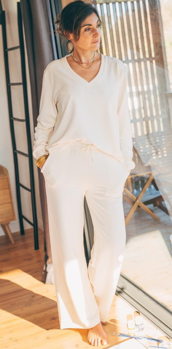 Pantalon ample, en molleton non gratté touché seconde peau