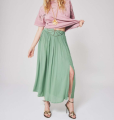 jupe longue à la coupe évasée offrant un tombé fluide et léger, agrémentée d'une fente sur le devant.