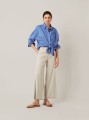 Pantalon lin extensible,Aéré, décontracté et estival . La jambe large et le pli transparent se rejoignent avec une ceinture élastique à l’arrière – Le mélange de lin léger est agréablement frais et souligne l’aspect détendu. Idéal pour des tenues simples avec une légère sophistication.